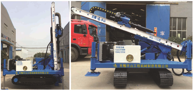 M G L-13 5 D型履帶式深基坑錨固鉆機(jī)是無錫半山工程機(jī)械制造有限公司根據(jù)國(guó)內(nèi)地鐵、高層建筑、機(jī)場(chǎng)、 地源熱泵及其它深基坑進(jìn)行描固、旋噴、降水所開發(fā)的效率高的鉆機(jī)。
